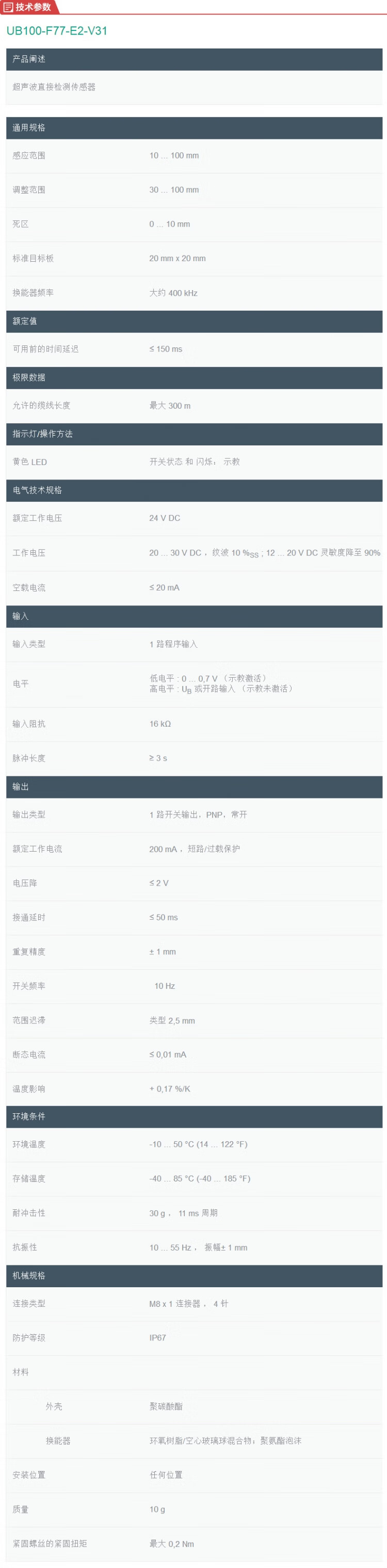倍加福UB400-F77-E2-V31