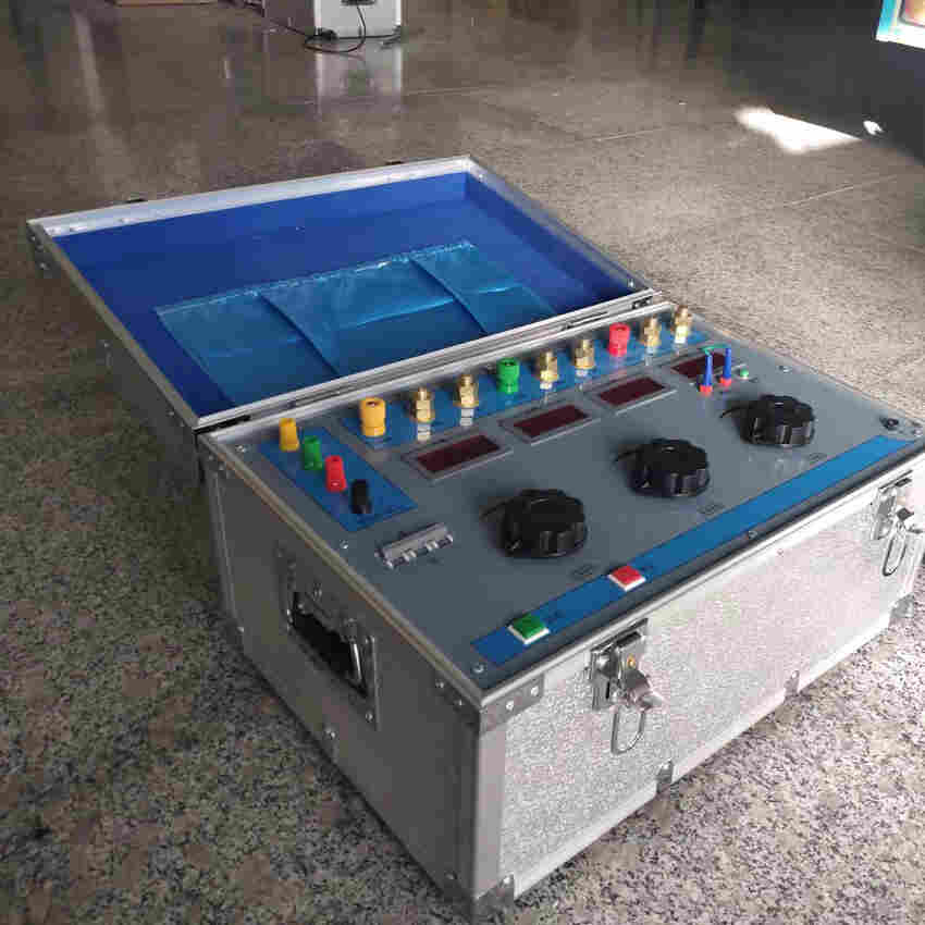 测试时应盖好热继电器盖,小电流值热继电器用小电流档位,把三个热元件串接后,再接在相应的测试柱上,常闭点接辅助接点柱上,量程转换开关选至适当电流档位,输出调节手轮置零位,自锁开关断开,检查各接线端柱接触应良好,打开电源开关,按启动钮,测试电源接通,旋转输出调节手轮至被测热继电器额定电流,使双金属片达到热稳定状态,以此稳定热态再旋转输出调节手轮使测试电流到额定电流的倍,计时从零开始,进入测试阶段,规定时间内,热继电器应脱扣为合格一项,热继电器接点断开,测试电流消失,计时停止,并显示测验时间,测试终了信号由灯光和声响给出,当要停止信号时可按关断声光开关。
