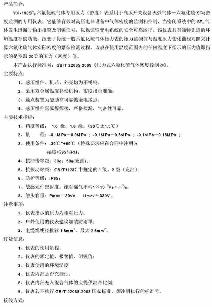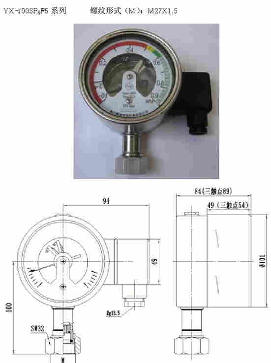 YX-100SF6F5气体压力表