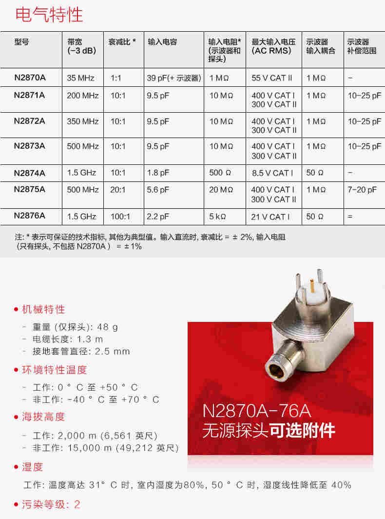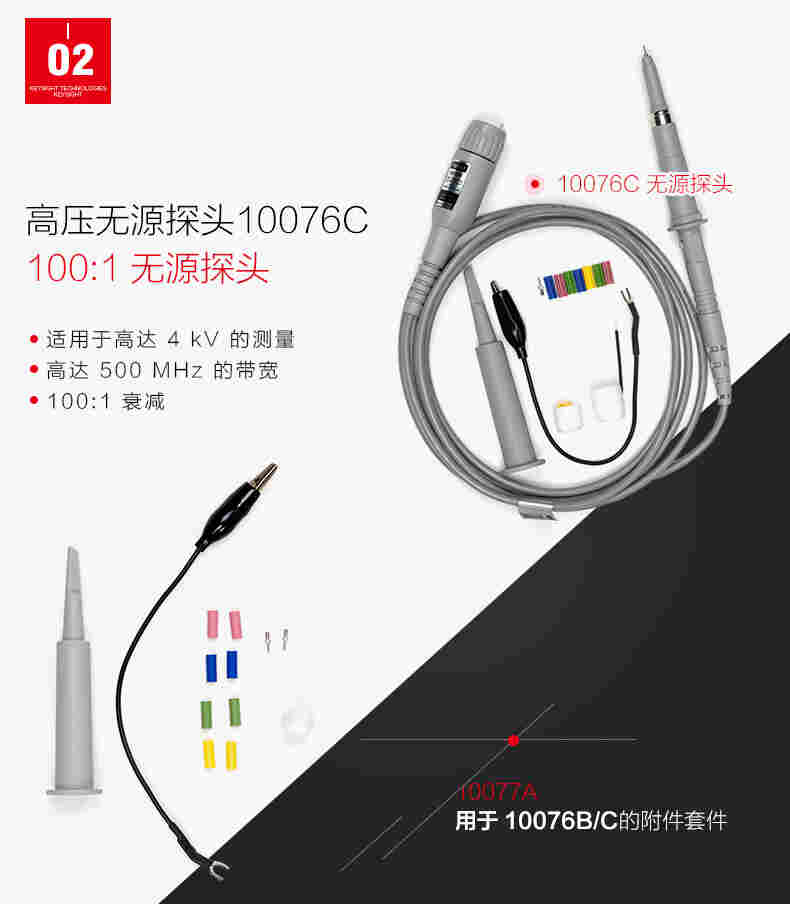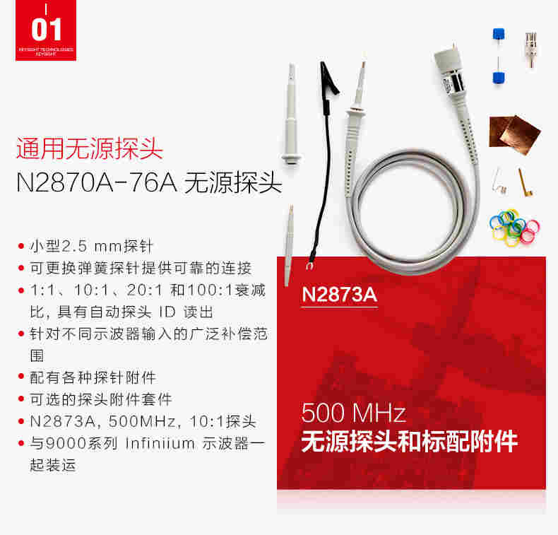 Keysight N2840A 低成本无源探头具有 10:1 衰减和 10 MΩ 的高输入电阻,可以调整以提供低频补偿和高频补偿。