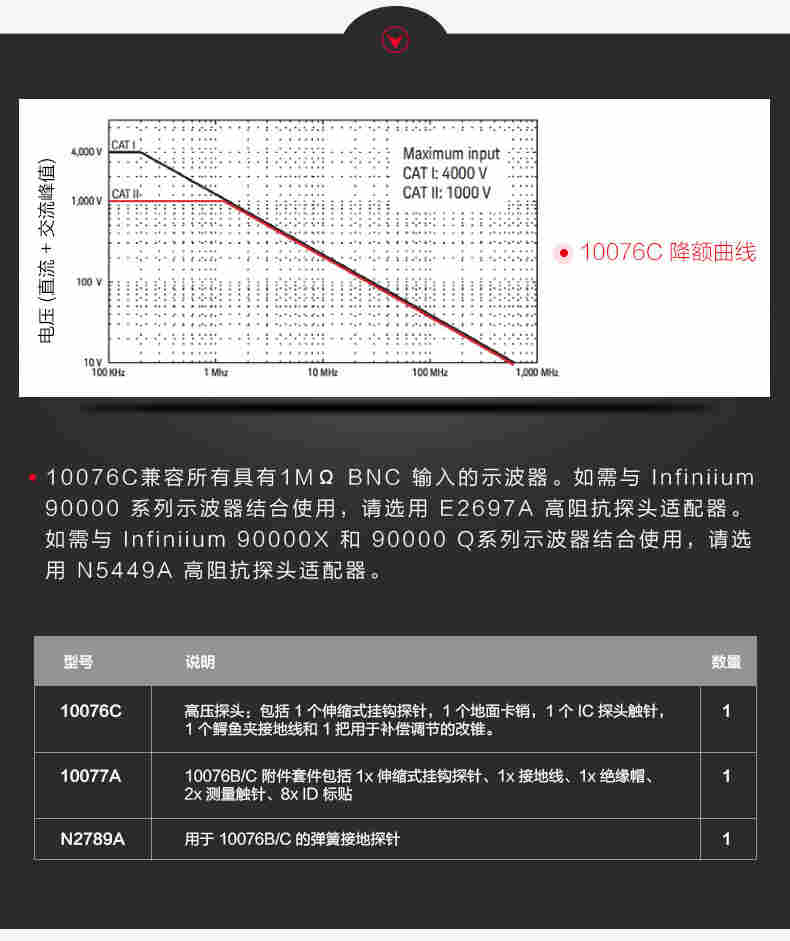 兼容 配有 1 MΩ 输入的 Keysight InfiniiVision 和 Infiniium 系列示波器