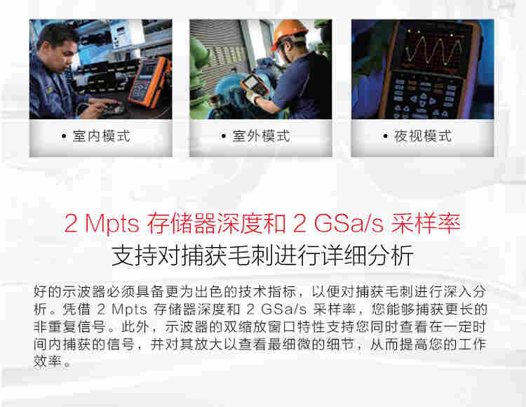 高达 1 GSa/s 采样率和 120 Kpts 存储器,让信号细节一览无余