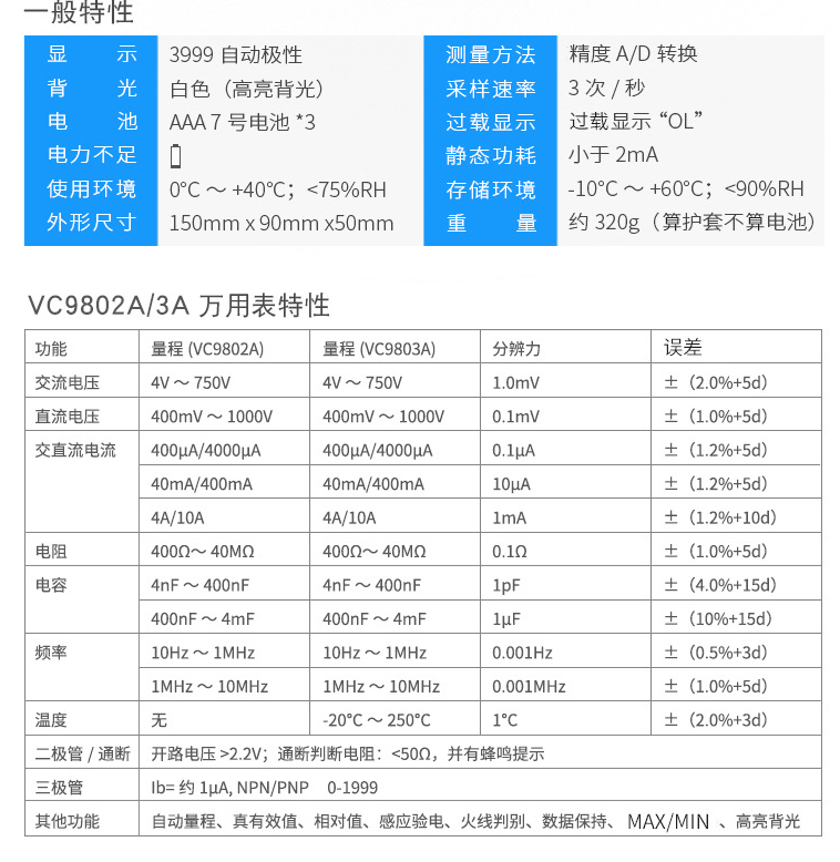 VC9803A电容频率真有效值万用表