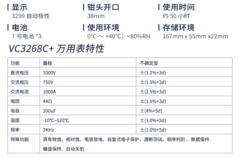 VC3268C交流相序判别数字万用钳形表