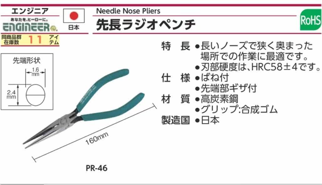 日本ENGINEER工程师 PR-46 尖嘴钳