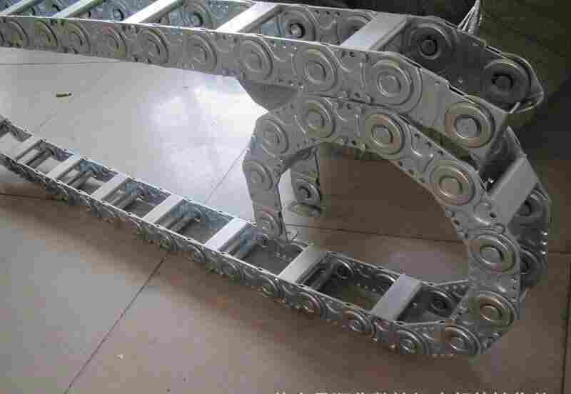 支撑板(挤拉铝合金),轴销(合金钢)等部件组成.使电缆或橡胶管与拖链之间不产生扭曲变形,链板经镀铬处理外形效果新颖,结构合理,灵巧强度高,钢铝拖链钢性好,不变形.安装方便,使用可靠。*生产穿线塑料尼龙拖链 镗铣床金属钢铝拖链的主体是由链板(采用钢板经淬火后再抛光镀铬/镀锌/喷塑处理)易拆装。适用于工作母机,移动机械等。其弯曲半径为50-600mm,拖链宽度可按用户要求定做,弯曲半径从50-800之间。拖链广泛应用于建筑,机床,铁路,车辆,化工,汽车,监控,建筑装修。横隔片,能有效的控制电缆线的摩擦和区分外形美观,噪音低,运行流畅 升级款具有长架空,载重强特点,尼龙封闭拖链拖链可承载数量多,重量大的电缆及油管,自由悬置(允许不用支承轮)长度大。