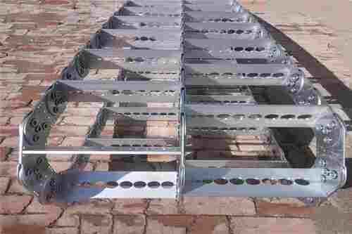 钢制拖链也叫钢铝拖链 分封闭和半封闭型,引进德国技术制造,是一种重型拖链,承载量高,架空长度大,适用于大中型机械,在使用过程中,大改善了拖链的扭曲和变型。
