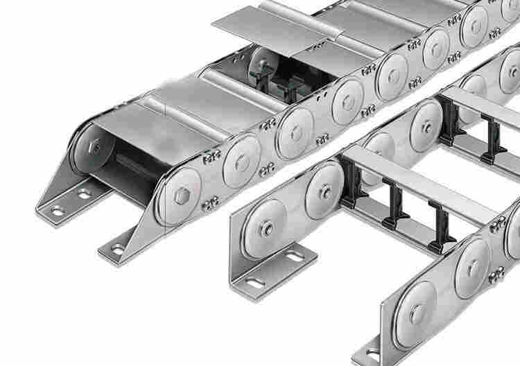 机床拖链按照型号分为小型拖链,一般型拖链与大型拖链,按照噪音系数可分为普通拖链与静音拖链,按照形式可分为普通拖链,并联拖链,S型拖链,按原料分为原包塑料和再生塑料等。塑料拖链按照结构可分为i桥式塑料拖链与全封闭塑料拖链拖链按结构分为桥式拖链和全封闭拖链拖链外形似坦克链不必穿线,打开盖板后即可把电缆,油管,气管,水管等放入拖链。油管,气管,水管,风管上,对电缆,油管,气管,水管,风管起牵引和保护作用。