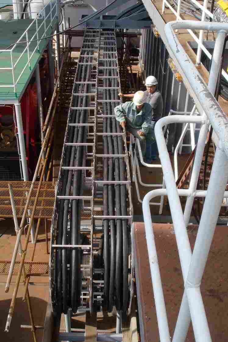 3.缆绳必须松散地并排铺设在牵引链中,并尽可能分开布置。用垫片将它们分开或穿入中性支架的分离腔中。牵引链中缆绳之间的间隙至少应为缆绳直径的10%。