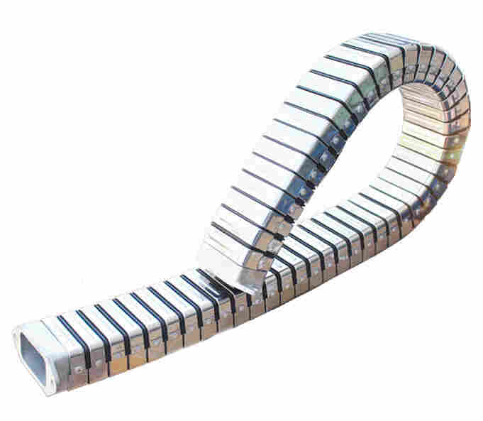 钢铝拖链不光维护护板的使用寿命,每一节护板一起平行摆开,并一起平行缩回,运转自若,钢板防护罩不会使护板脱节,有撞击声,既漂亮又进步了护板的使用寿命,在原密封胶条的基础上又加盖了一层不锈钢盖板,避免铁屑高温烧伤胶条擦入轨面拉伤导轨,护罩每片可连发同动,不一样于通常护罩一片接一片拉动式,因而噪音极低,选用设备之护罩能够增加使用寿命。