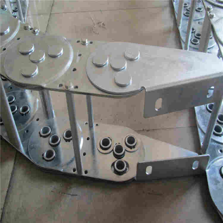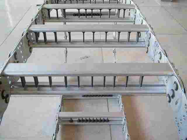 支撑板(挤拉铝合金),轴销(合金钢)等部件组成.使电缆或橡胶管与拖链之间不产生扭曲变形,链板经镀铬处理外形效果新颖,结构合理,灵巧强度高,钢铝拖链钢性好,不变形.安装方便,使用可靠。*生产穿线塑料尼龙拖链 镗铣床金属钢铝拖链的主体是由链板(采用钢板经淬火后再抛光镀铬/镀锌/喷塑处理)易拆装。适用于工作母机,移动机械等。其弯曲半径为50-600mm,拖链宽度可按用户要求定做,弯曲半径从50-800之间。拖链广泛应用于建筑,机床,铁路,车辆,化工,汽车,监控,建筑装修。横隔片,能有效的控制电缆线的摩擦和区分外形美观,噪音低,运行流畅 升级款具有长架空,载重强特点,尼龙封闭拖链拖链可承载数量多,重量大的电缆及油管,自由悬置(允许不用支承轮)长度大。