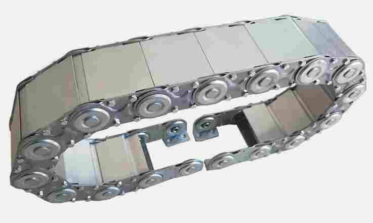 机床拖链按照型号分为小型拖链,一般型拖链与大型拖链,按照噪音系数可分为普通拖链与静音拖链,按照形式可分为普通拖链,并联拖链,S型拖链,按原料分为原包塑料和再生塑料等。塑料拖链按照结构可分为i桥式塑料拖链与全封闭塑料拖链拖链按结构分为桥式拖链和全封闭拖链拖链外形似坦克链不必穿线,打开盖板后即可把电缆,油管,气管,水管等放入拖链。油管,气管,水管,风管上,对电缆,油管,气管,水管,风管起牵引和保护作用。