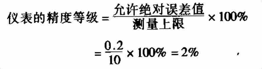 例:某仪表的测量上限为10MPa ,所测量的允许误差不大于0.2MPa ,问应选择仪表的精度是?