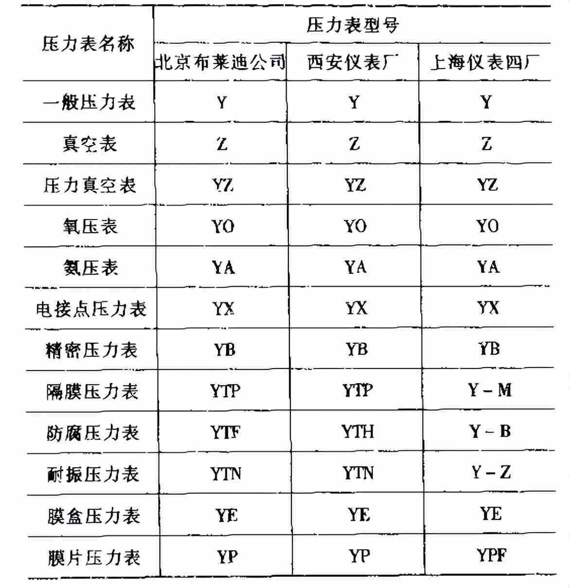 目前关于压力表的型号没有统一规定,而是由各压力表生产厂家自行规定的。