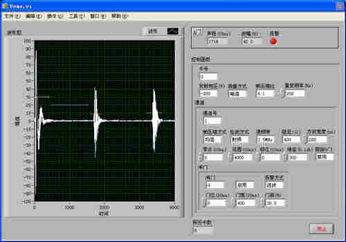 位置,红*带为工件台阶结构回波,未过报警闸门