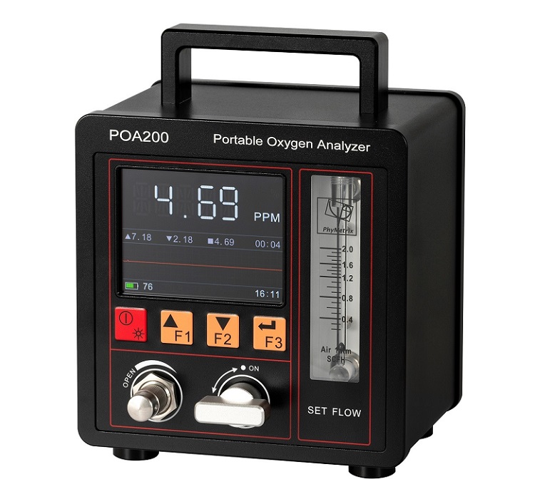 POA200型微量氧分析仪采用了信号处理,测量快速稳定准确,并内置可长时间使用的重复充电锂电池。