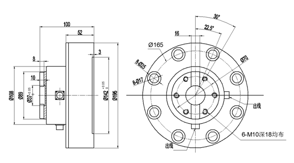· 双量程静态扭矩测量。一端为键法兰连接,一端为法兰盘连接。