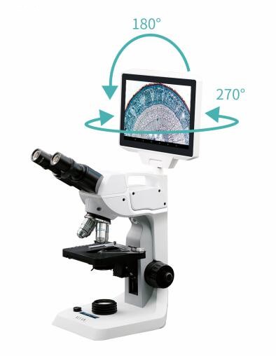 8. ▲液晶显示屏 尺寸和参数:10.1寸高清触摸液晶屏,屏幕分辨率1920×1200;水平旋转性能:中轴旋转角度270°:顺时针可转动180°逆时针旋转90°, 屏幕转动时,双目观察部件及观察影像不变动,有自锁功能有限位,避免转动角度过大、失灵;上下翻转性能:上下翻转角度可达180°;