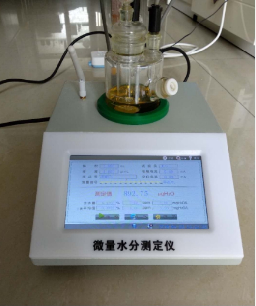 卡尔—菲休库仑滴定法用于测量样品中微量水分含量,此方法具有精度高、测试成本低廉的点而被应用。本仪器基于卡尔—菲休库仑滴定法原理,测定液体、固体、气体中的微量水分,用于电力、石油、化工、制药、食品等行业,符合标准GB7600。