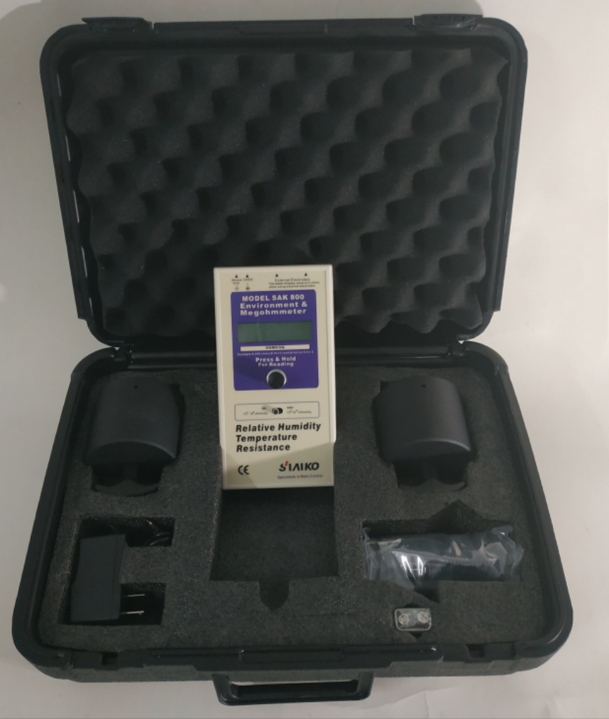 SAK800兆欧表是依据EOS/ESD,CECC、ASTM和UL测试规程设计的,用于测量所有导电型、抗静电型及静电泄放型表面的阻抗或电阻。使用容易,高品质,高度,该仪表还可测量影响电性能的相对湿度和温度。测量阻抗温度和湿度。“湿度和温度会影响阻抗,所以测量
