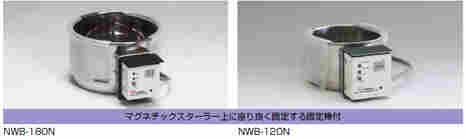| NWB-180N型NWB-120N型工作温度范围室温 +5°C~199°C温度调节器铂电阻温度计检测器时分比例控制加热器350瓦200瓦温度精度±0.5~1°C(搅拌时)容器的内部尺寸和材料φ180×H110(SUS-304)φ120×H80(SUS-304)外形尺寸宽193×长278×高110mmW132×D195×H81毫米权力AC100V 50/60Hz 4AAC100V 50/60Hz 2A重量1.3千克0.73千克使用环境室温:4°C~37°C,湿度:85%以下,无冷凝标准液体体积2公升0.7公升附属品保护片,固定杆100mm保护膜,固定杆 100mm 盖子 |