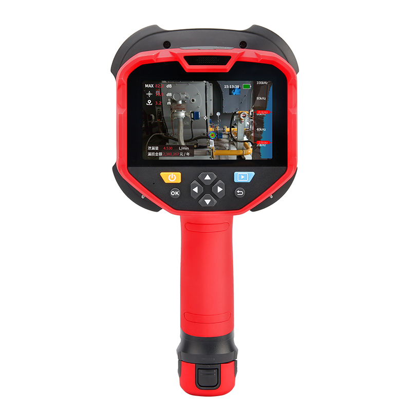 UT810GY 是一款防爆标志为Ec ic IIC T6 G的手持式超声波成像仪,利用麦克风阵列技术波束形成技术获取声源分布数据,并配合高清摄像头实时采集视频画面,通过将声源分布数据同视频图像进行声像融合,把变化的声源动态的呈现在显示屏上。便携轻巧,操作简单,能够快速上手作业,仅需要调节测试频率范围、测试动态范围等参数即可满足绝大多数测试需求;支持拍照、视频模式;支持扩展大容量数据存储卡,测试数据快速导出及分析。 广泛应用于: 局放检测:发电厂、输电线路、变电站、配电等电力行业。实现电力设备局放检测的可视化定位 ,频段可调,远距非接触,大面积高效筛查。 气体泄漏:燃气、化工、冶金、生产制造等领域。实现检测泄漏可视化,30m测距测量,智能计算泄漏量等级与损失,聚焦功能可减少其他噪声的干扰。
