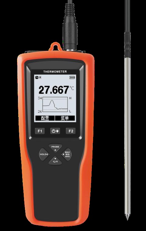 F1、电源(背光)、F2、探头切换(上)、单位切换(下)、保持(左)、统计值(右)
