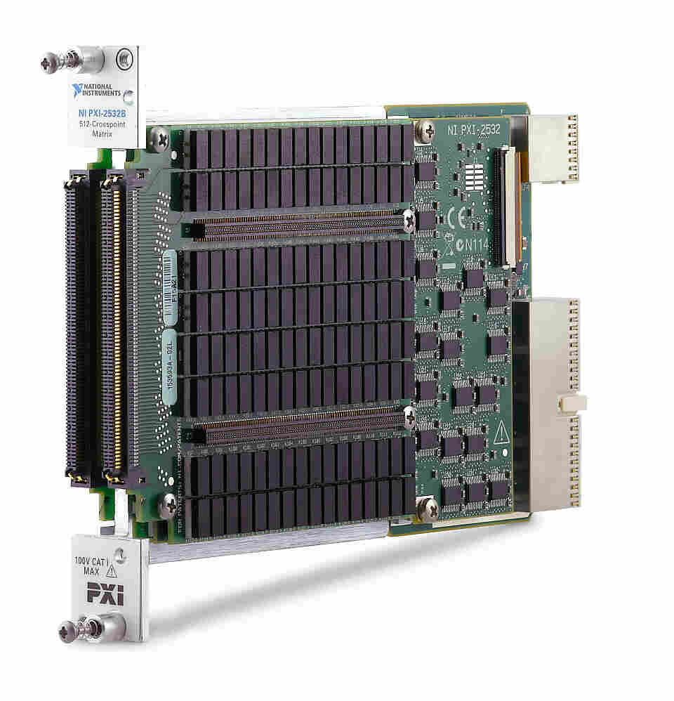 PXI-2532B是一款具有512个交叉点的高速矩阵开关模块。 PXIe-2532B的3U PXI槽提供了大规模的矩阵,可实现PXI平台的高密度开关配置。 PXI-2532B可在单个机箱中创建4x2176或8x1088的1线矩阵,甚至可通过多机箱解决方案实现更大型的配置,因而是高通道数自动化测试配置的理想选择。 PXI-2532B使用体积轻巧的舌簧继电器,其切换速度达2000次/秒并能与仪器同步运行,因而可为信号达100 VDC/100 Vp或0.5 A的测试系统提供大的处理能力。