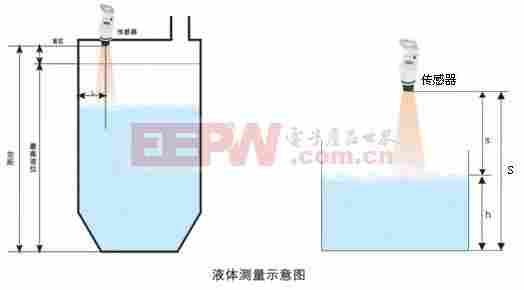 首先,由超声波发生器将电能转换为超声波机械振动发射超声波;其次,超声波在空气中进行传播,遇到液体表面后产生反射,反射后的超声波在空气中传播一段时间后背超声波接收器接收到,并将超声波机械振动转换为电能;后,根据得到的发送超声波至接受超声波的时间T便可计算超声波传输距离S(S=CT/2,其中C表示声速),进而根据实际情况得知其液面高度。