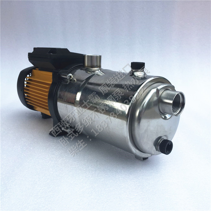 一体化多级离心泵,泵体及叶轮均为不锈钢304材质,电机转轴为不锈钢420,适用于家用供水系统,园艺灌溉系统,运作安静,自吸性能达8米,加装止回阀能提升自吸性能.