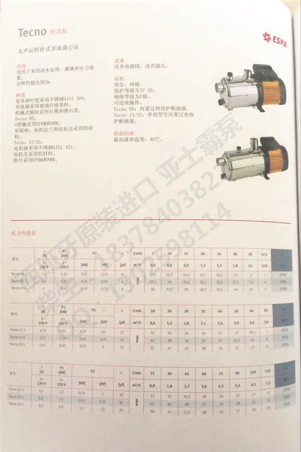 泵体,叶轮为不锈钢AISI 304,电机转轴为不锈钢AISI420 导流室为玻璃纤维塑料,橡胶为EPDM,机械式轴封为石墨及氧化铝,一体化卧式多级离心泵,适用于家用供水系统,园艺灌溉系统,可用于简单食品工业,也可用于工业领域中的特殊应用