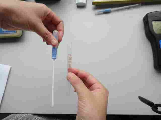 1、拔出塑料套管,露出采样棉签。