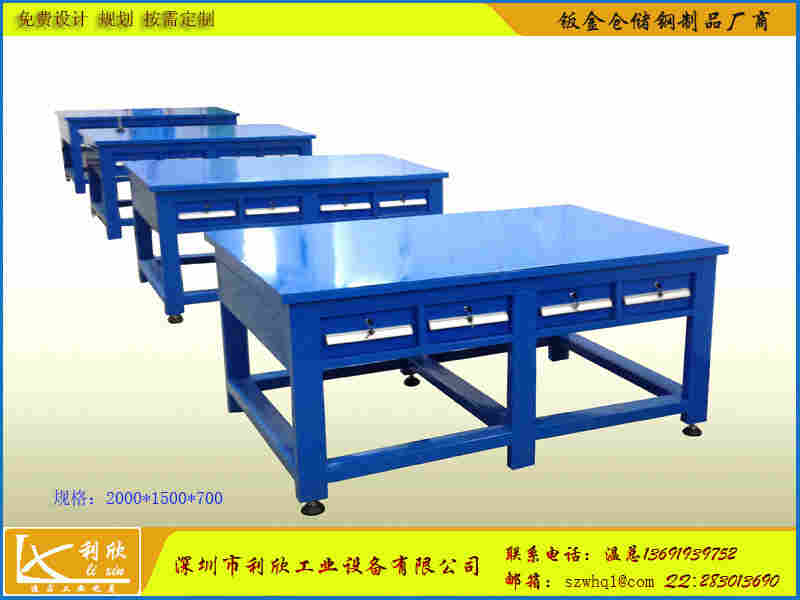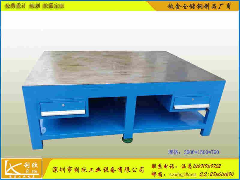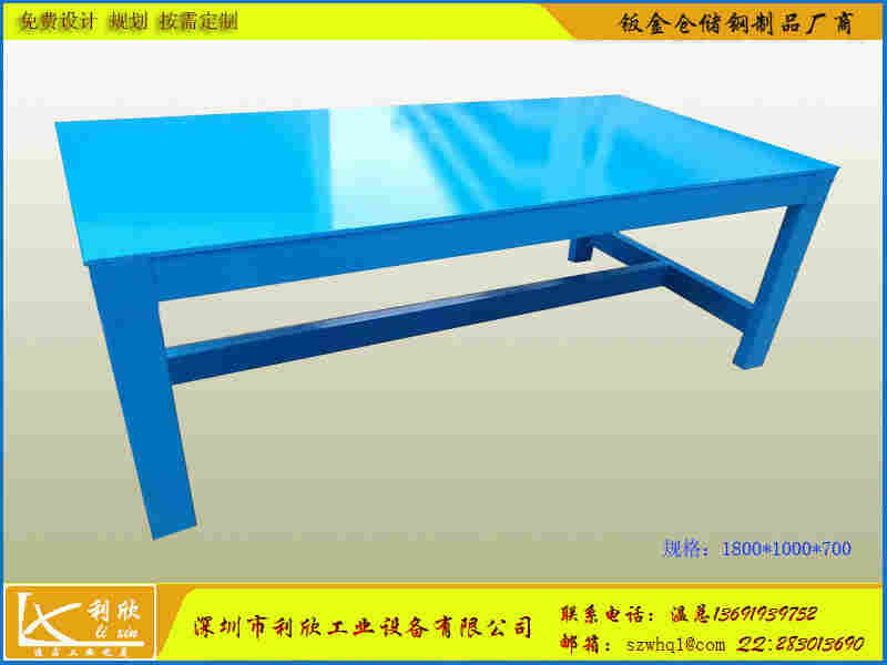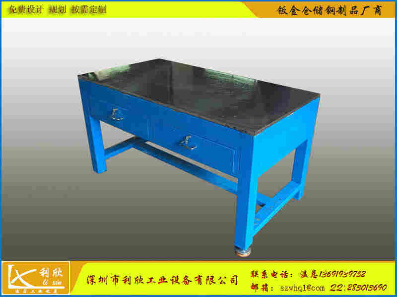 5、铁板合成台面:一般表面为8mm平整钢板,基层为42mm木基层,增加强度,适用于工厂钳工或高强度作业;