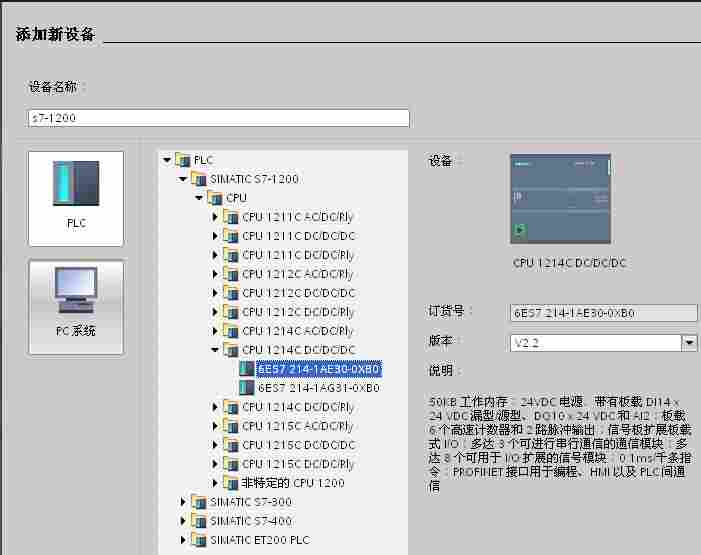 2.添加硬件并命名PLC