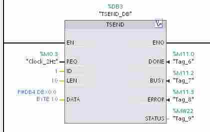 DATA | := P#DB4.DBX0.0 BYTE 10 | // 发送数据区的数据,使用指针寻址时,DB块要选用寻址; |