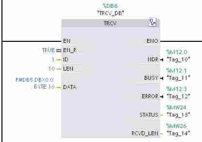 图12. 调用 TRCV 指令并配置接口参数