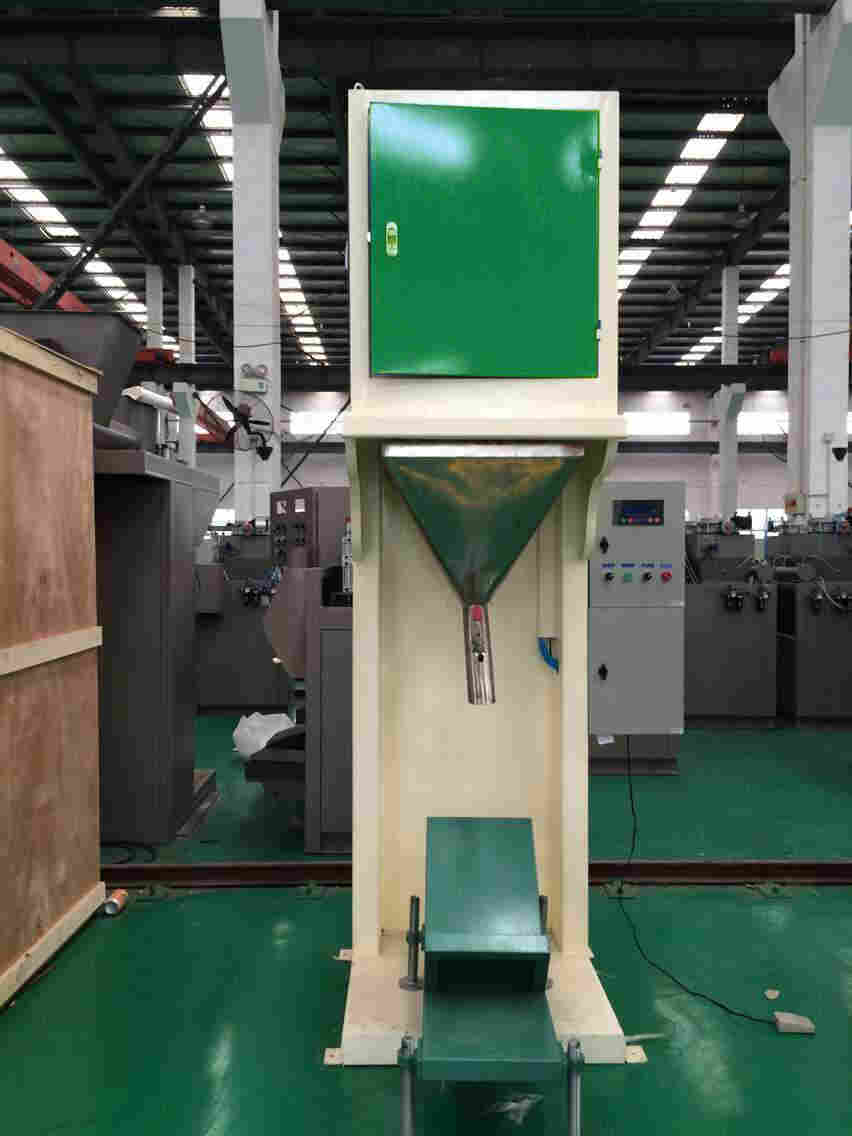 该设备是利用物料自身重力(自由落体)方式进行给料,称重计量的定量包装设备。定量控制是二段式控制,粗细加料,细加料是改变给料仓下的通流面积,从而改变进入称量斗体内的流量,以达到定量控制的目的。适用范围是单一或混合颗粒状物的包装。