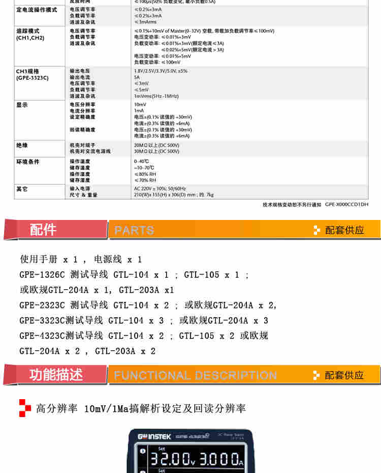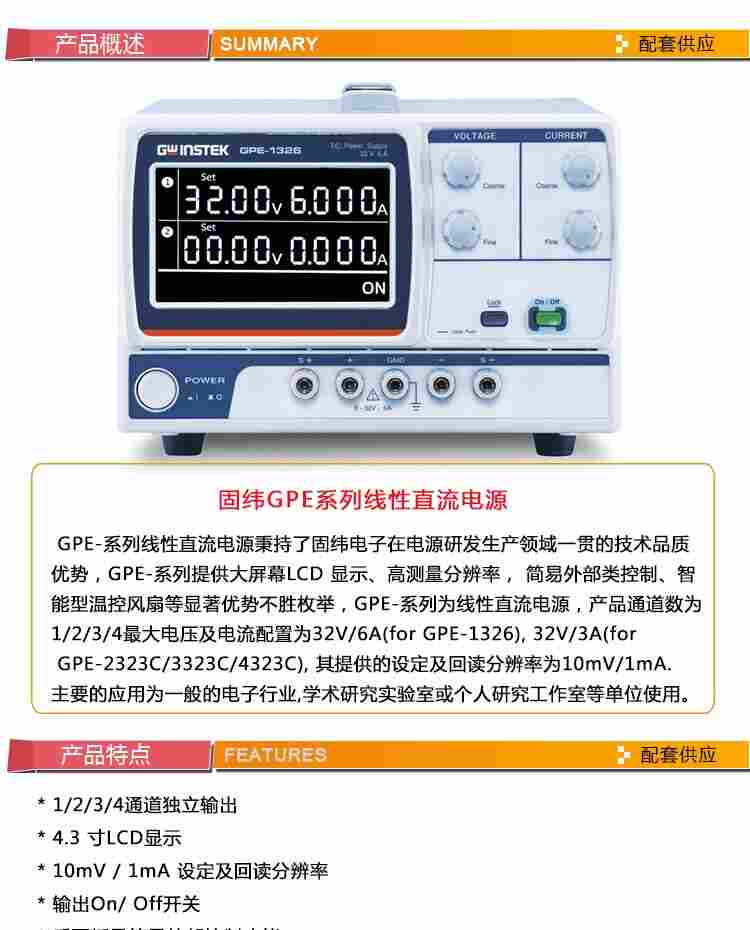 GWinstek/固纬GPE-4323C/GPE-3323C/2323C/1326C多路线性直流电源