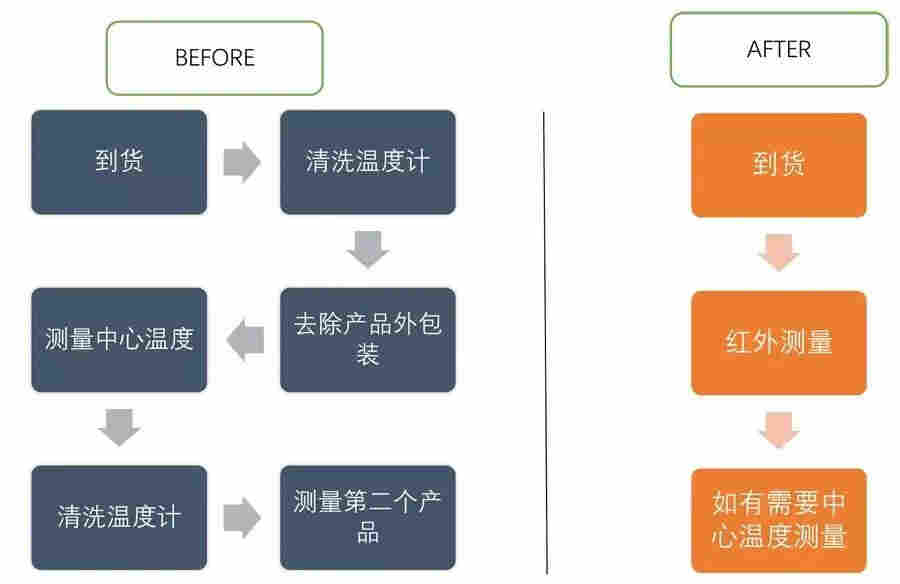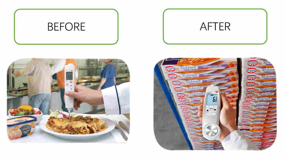 为给消费者呈现的赏味体验,温度测量是门店每日必不可少的重复工作。门店之前使用testo 106刺入式测温仪进行品质评估,改用testo 104 IR红外及接触式二合一测温仪后工作效率显著提高。