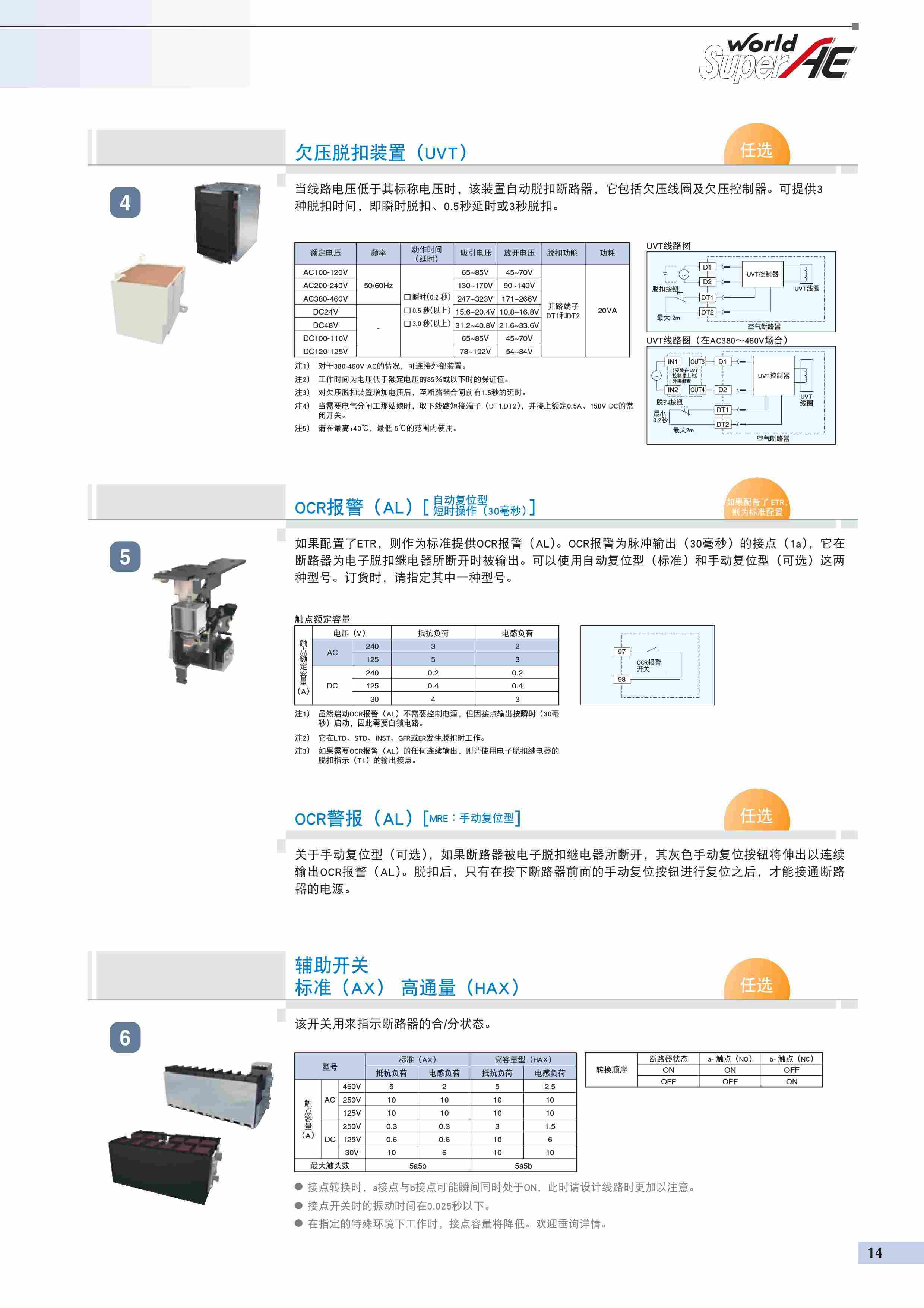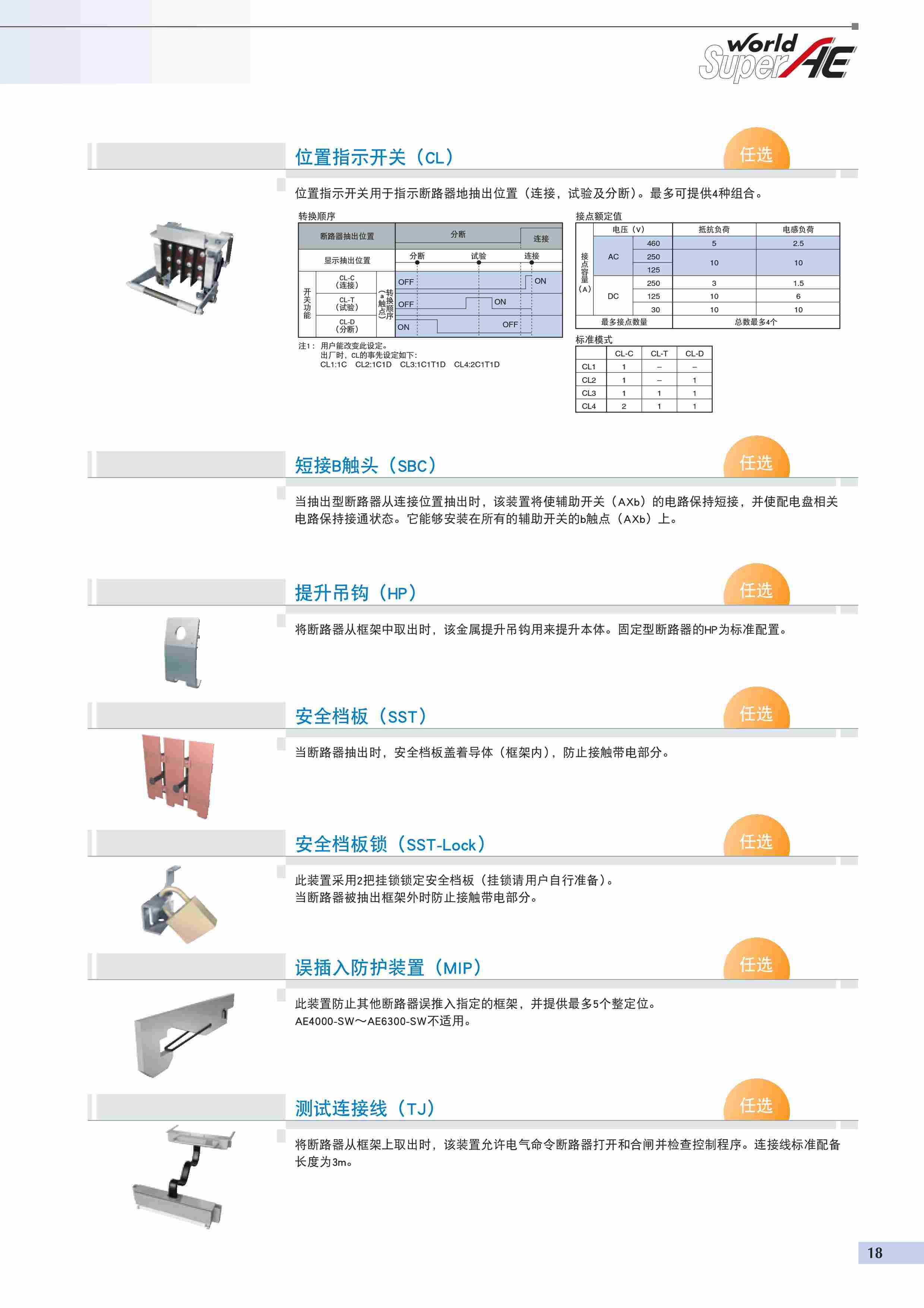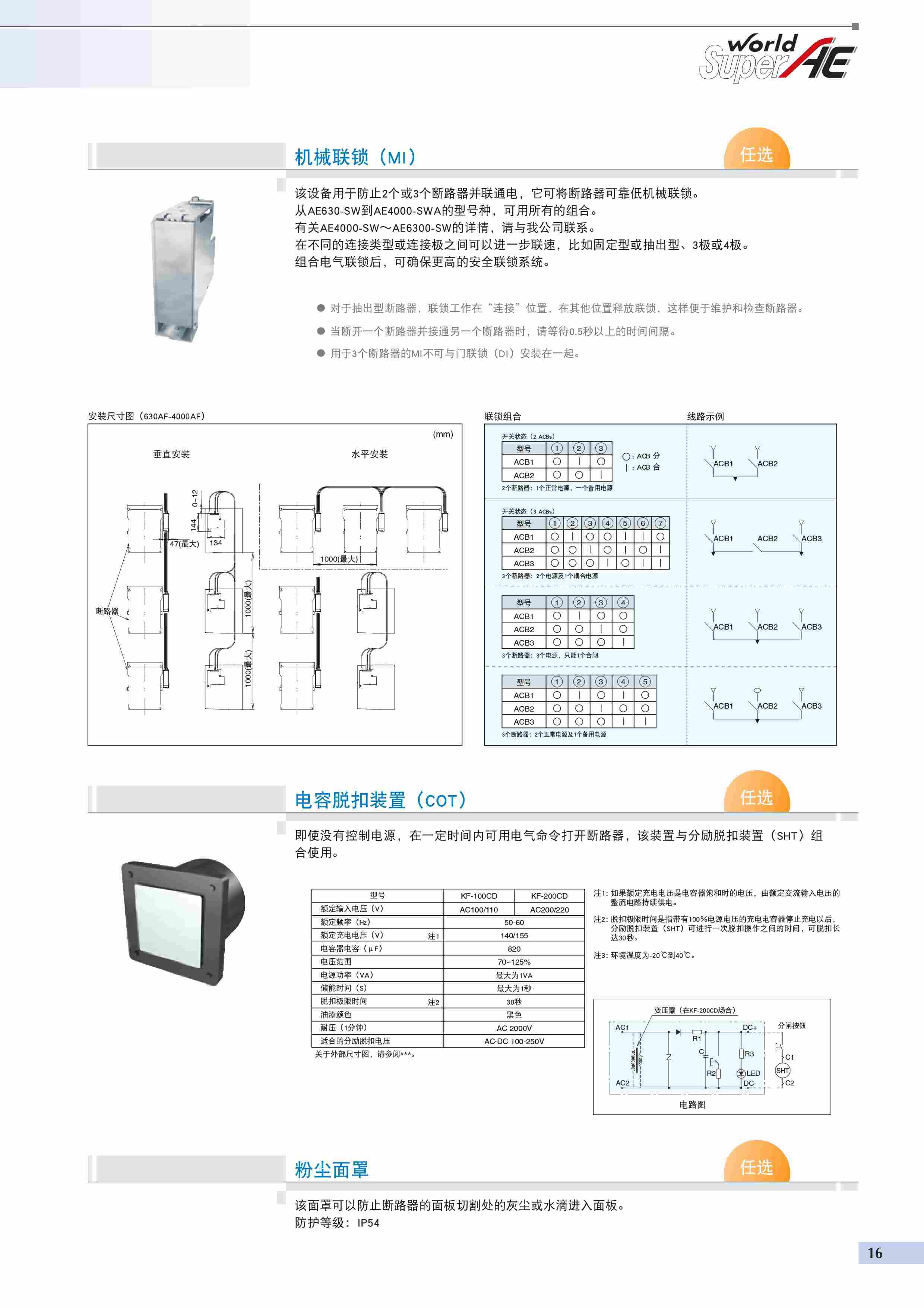 1、AE-SW系列包括:一个WS1(2)NAP3型智能脱扣器(AC100-240V/DC100-125V)带输出端子,分励脱扣装置(SHT,100-250VAC。DC)