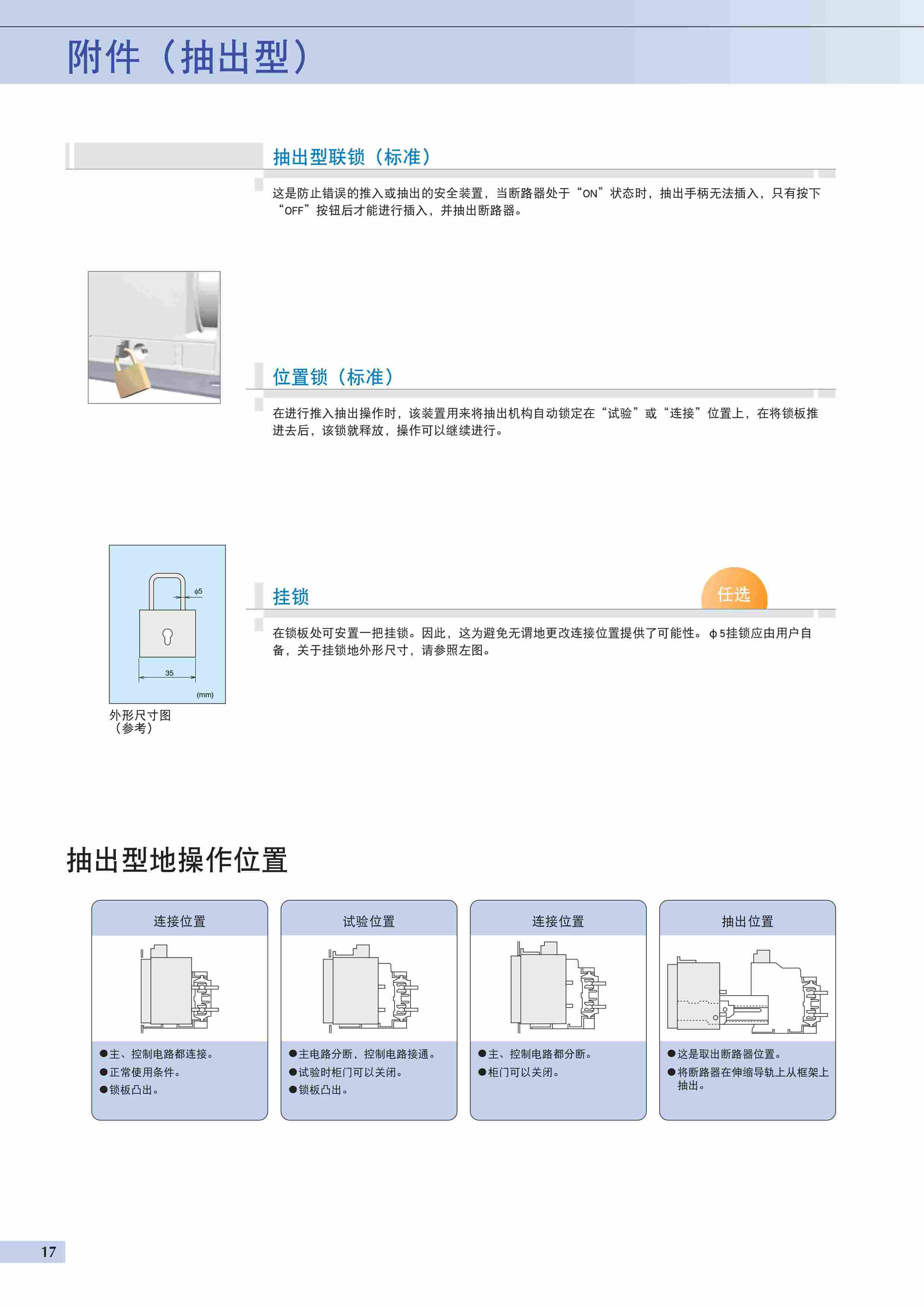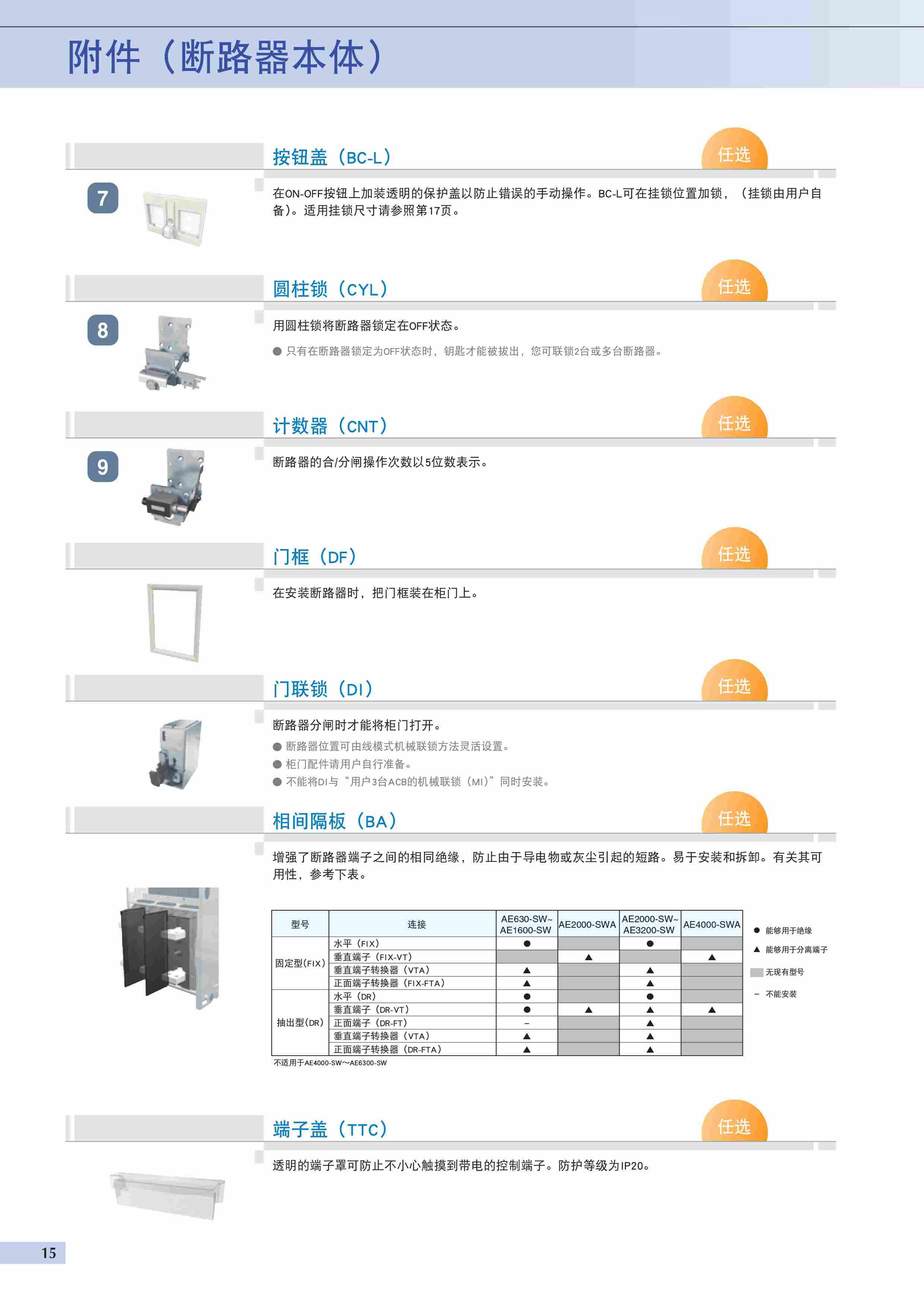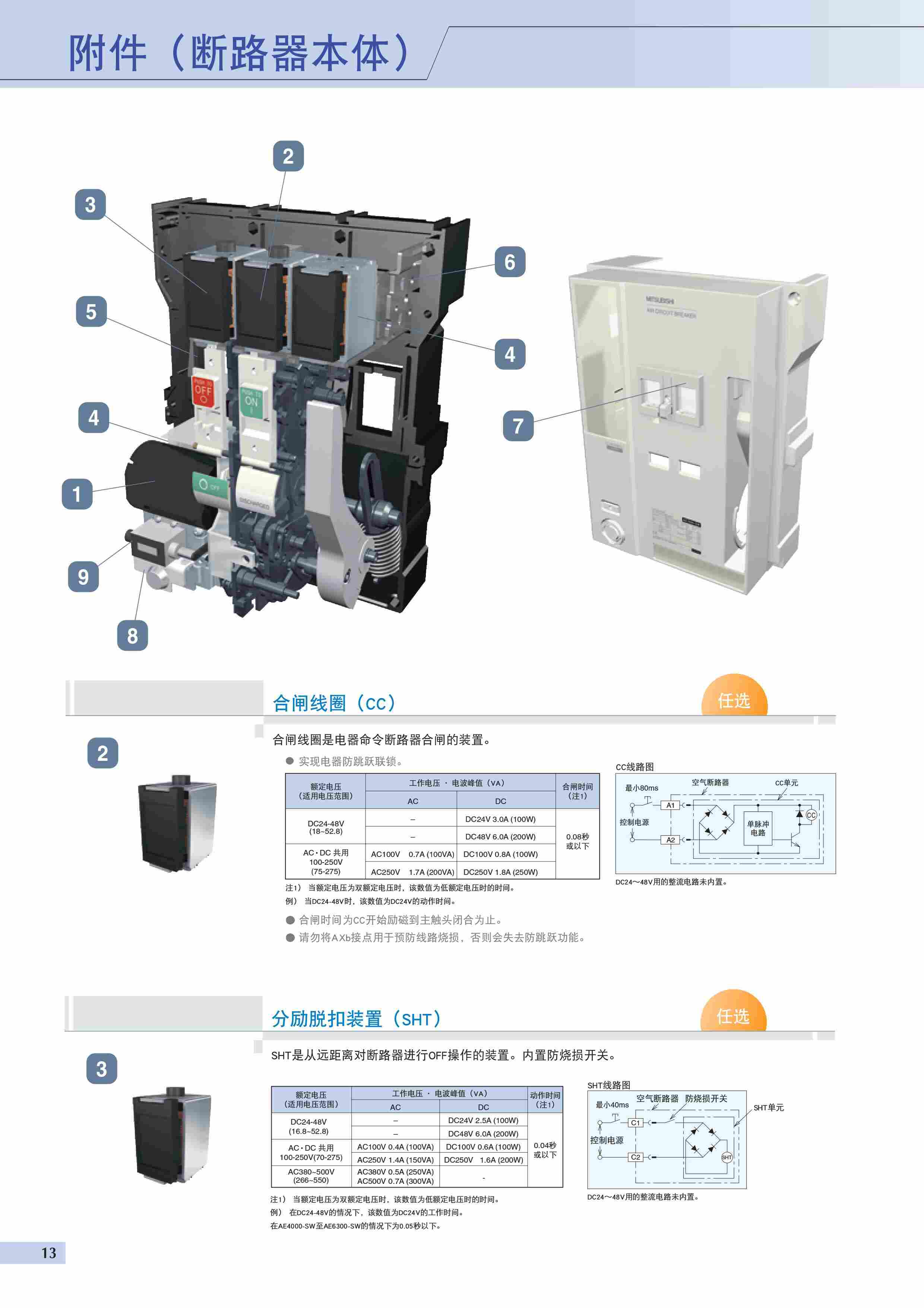 1、AE-SW系列包括:一个WS1(2)NAP3型智能脱扣器(AC100-240V/DC100-125V)带输出端子,分励脱扣装置(SHT,100-250VAC。DC)