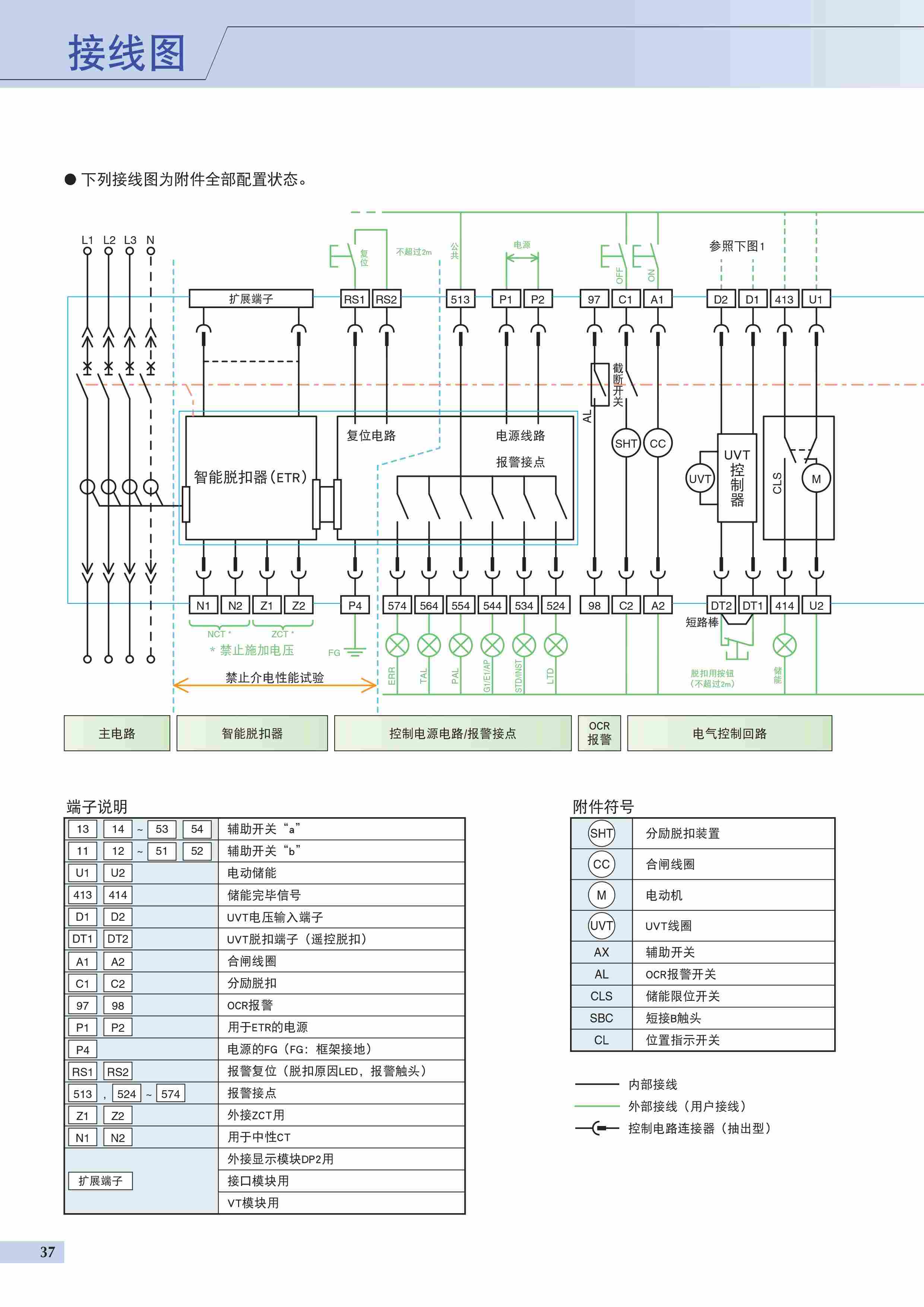 1、AE-SW系列包括:一个WS1(2)NAP3型智能脱扣器(AC100-240V/DC100-125V)带输出端子,分励脱扣装置(SHT,100-250VAC。DC)