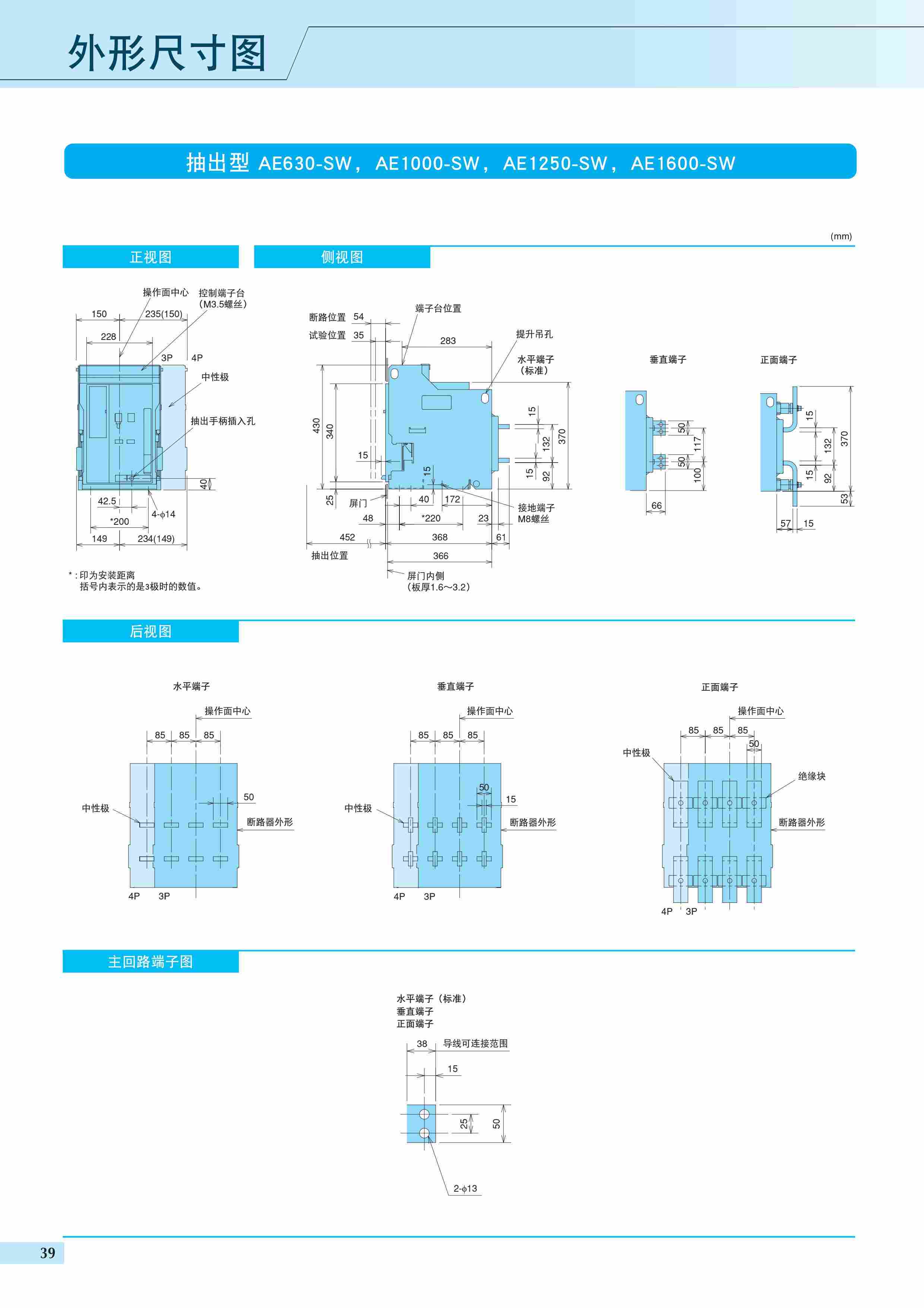 2、AE2000-SWA与AE4000-SWA母排的接线方式只有行垂直。