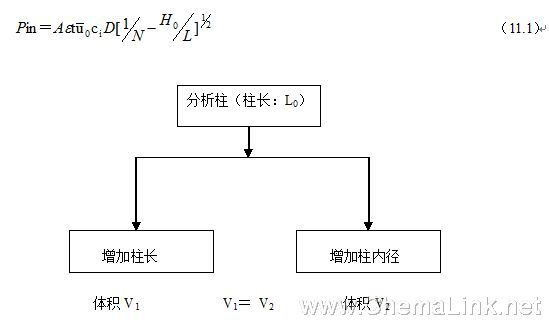 制备高效液相色谱的关键是色谱柱,所选用色谱柱的大小取决于待分离样品的量。可通过增加分析柱柱长或增加分析柱内径来增大样品的制备量。如图11.4所示。