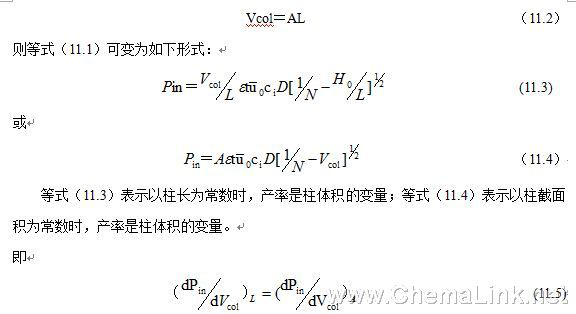 通过等式(11.1)可以推出:在分析分离的条件下,1/N= H0/L;L=L0(L0为分析柱长),则括号内数值为零,产率为零(被分离样品量无限小)。