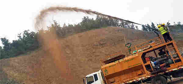客土喷播机是应用于边坡绿化的*设备,通过本设备将土壤基质,绿化草籽,保水剂,黏合剂,肥料等,在喷播机搅拌罐中与水混合成胶状的浆液,用泥浆泵将其喷播于坡面上。由于浆液中含有保水材料,黏合材料,各种养分,在保证了植物生长所需的水和其它营养物质来源的同时有效防止雨水冲刷对喷播材料的破坏,故而植物能够健康,迅速地成长。
