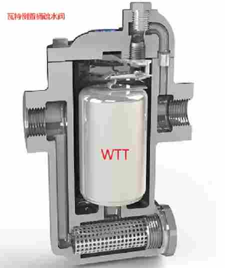 杠杆浮球式疏水阀,是利用浮力原理,浮球根据凝结水量的,随水位的变化而作升降,自动调节阀座孔的开度,连续排放凝结水,当凝结水停止进入时,浮球降的底部,回到关闭位置,排水停止,由于排水阀座孔是在凝结水位以下,形成水封、水、气自然分离,达到无蒸汽泄漏。自由浮球疏水阀,由于本身的制作要求限制了其使用的广泛性,故不做单独讨论。