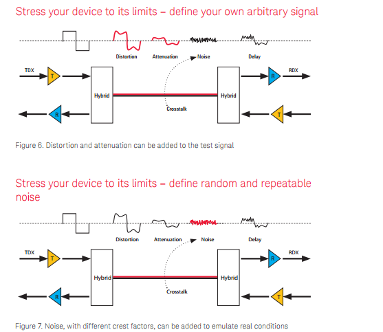 The waveforms and the adjustable noise (with a variety of crest factors) make it easy to emulate real world conditions, in a controllable and repeatable way. Gaussian white noise is a good approximation to many real-world scenarios. The crest factor is an indicator of signal quality. The higher the crest factor is the more noise is used. If you conduct a jitter tolerance test of your receiver using a noise source with too low a crest factor, it could pass the test even if the device is substandard. The 1000Base-T standards require a BER of 10-10 or better. A crest factor of seven corresponds to a BER of 10-12. So switching between crest factors of 3.1, 4.8, 6 and 7 can help you identify problems quickly. The 81160A generates noise digitally, which makes it repeatable – although the noise remains random for the test, because it has a repeat period of over 20 days.