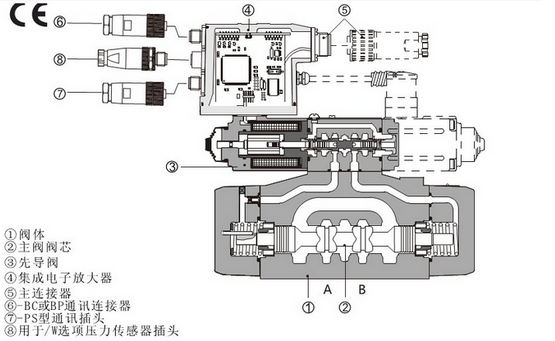 ATOS阿托斯比例电磁阀的结构如图所示。比例电磁铁是直流电磁铁,但它与普通直流电磁铁不同。普通直流电磁铁的衔铁只有吸合和断开两个工作位置,并且在吸合时磁路中几乎没有气隙.而比例电磁铁要求吸合力或位移与给定电流成比例。并在衔铁的全部工作行程上,磁路中保持一定的气隙‘.其结构主要由极靴1、线圈2、壳体5和衔铁10等组成。线圈2中通电后产生磁场,因隔磁环4的存在。使磁力线主要部分通过衔铁10、气隙和极靴1,形成回路口极靴对衔铁产生吸力门在线圈中电流一定时。吸力的大小因极靴1与衔铁间的距离不同而变化。但衔铁在气隙适中的一段行程中,吸力随位置的改变发生的变化很小。