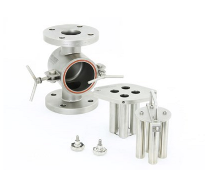 强大的Neoflux®(钕)磁棒位于产品流中,可以过滤掉小的Fe颗粒(低至30微米)和弱磁颗粒(不锈钢残渣)。这些极细的Fe和不锈钢颗粒如此之小,使得它们甚至不能用金属检测器检测。磁性过滤器用于食品,制药和陶瓷工业中,尤其是用于诸如颜料或油漆的去铁的应用。它们也用于陶瓷工业中“清洁”釉料,以防止形成“黑斑”。